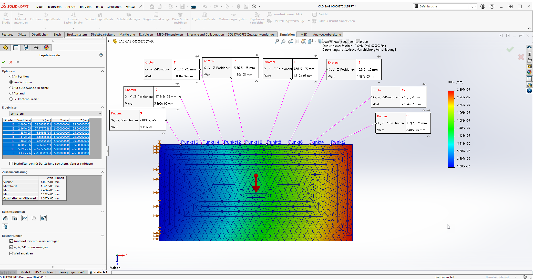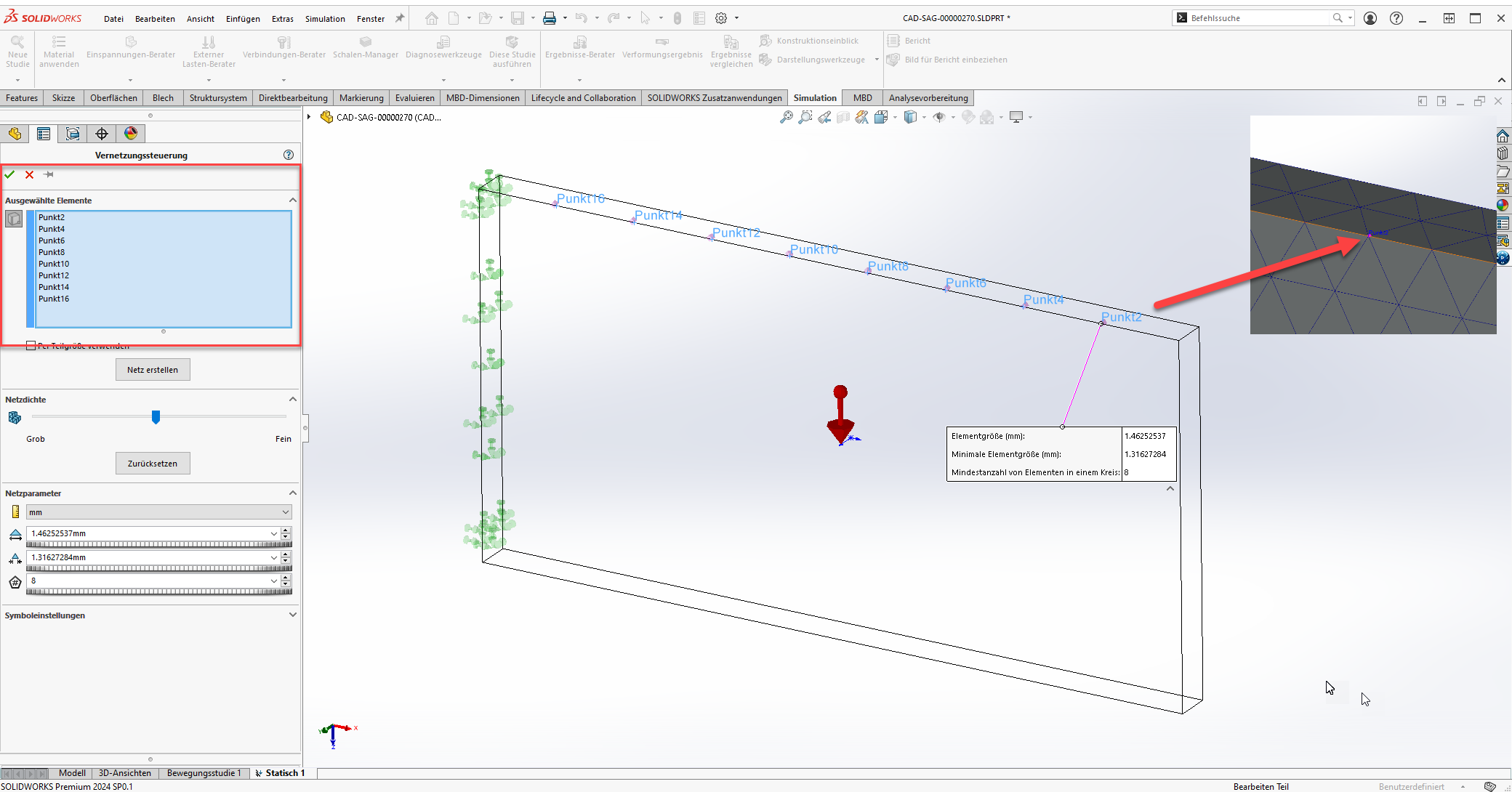 In der Studie müssen die Referenzpunkte in der Netzsteuerung angeben werden. Nach der Vernetzung befindet sich bei jedem Referenzpunkt ein Knoten.