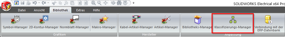 SOLIDWORKS Electrical Schematic bietet die Möglichkeit, dass für eine ganze Klasse ein gemeinsames Symbol genutzt werden kann. Diese Zuweisung erfolgt im Klassifizierungs-Manager in der Spalte 2D-Kontur via Register Bibliotheken.