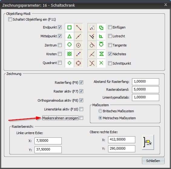 Diese grüne Box, rund um den Footprint entspricht den Längen und Breitenangaben des Artikels und somit dessen maximalen Abmessungen. Die Sichtbarkeit dieser grünen Umrandung kann in der Parametermaske der Montagezeichnung eingestellt werden.
