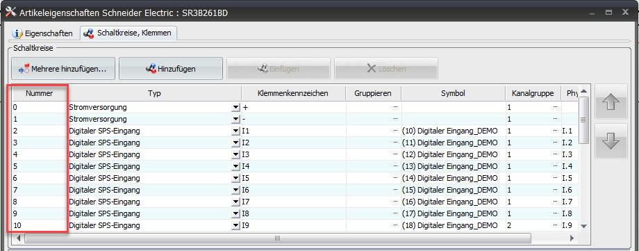Diese pro Schaltkresi eingefügten Attribute bezeiehen sich aktuell noch alle auf dieselbe Schaltkreisnummer. Per Koppelklick kann nun die Schaltkreisnummer einfach überschrieben werden (Gelblich hinterlegte, vorgängig mittels [n] dargestellte Nummern).