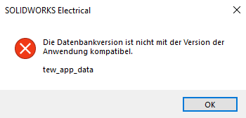 Diese Situation kann entstehen, wenn auf einer Arbeitsstation eine neuere Version von SOLIDWORKS Electrical installiert und gestartet wurde. Dabei werden die Datenbanken konvertiert. Diese Konvertierung kann nicht rückgängig gemacht werden. Ältere installierte Softwareversionen können die neuen Daten nicht lesen.