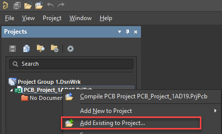 Eine Umwandlung oder spezielle Handhabung der Schema-Dateien ist nicht notwendig. In Altium Designer braucht diese SOLIDWORKS Datei lediglich via rechter Maustaste > Add existing to Projekt... dem Projekt hinzugefügt zu werden.