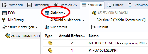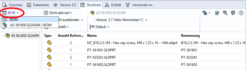 2. Benannte Stücklisten im PDM Explorer anzeigen
