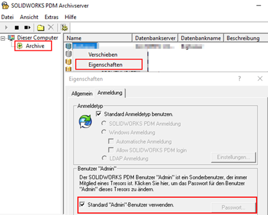 · Auf dem PDM-Server öffnen Sie die Archivserver-Konfiguration