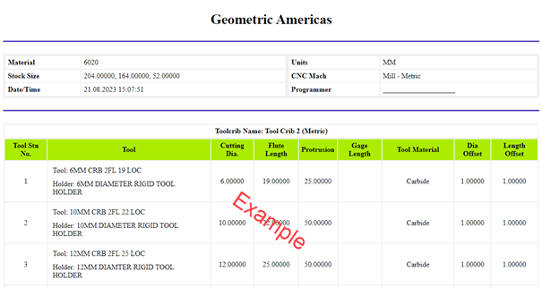 Mit der Installation von SOLIDWORKS CAM stehen Standardvorlagen für die Erzeugung von Programmierblätter (Einrichtblätter/Rüstblätter) direkt aus der aktuellen CAM Datei zur Verfügung. Damit können die gewünschten Informationen anhand einer Datei exportiert und zur Vorbereitung der Maschine für den programmierten NC Code verwendet werden.