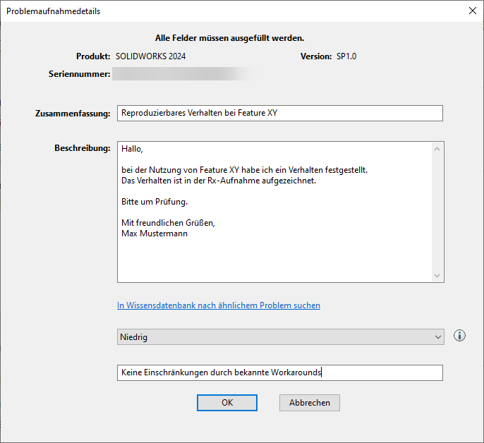 Das Vorgehen für die Problemaufnahme bleibt für beide SOLIDWORKS Lizenzmodelle identisch.