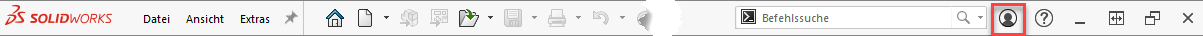 Damit die Einstellungen in den Systemoptionen sichtbar sind, Ihre Einstellungen synchronisiert werden und auch die gewünschten Einstellungen vorgenommen werden können, müssen Sie mit Ihrem Login angemeldet sein. Dies erfolgt via kleinen Icon in der rechten oberen Ecke von SOLIDWORKS.