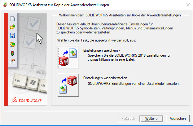 Alle SOLIDWORKS Einstellungen lassen sich speichern. Bis und mit SOLIDWORKS 2017 war dies mit dem Assistenten zum Kopieren von Einstellungen realisierbar. Hier sehen Sie auch wie.