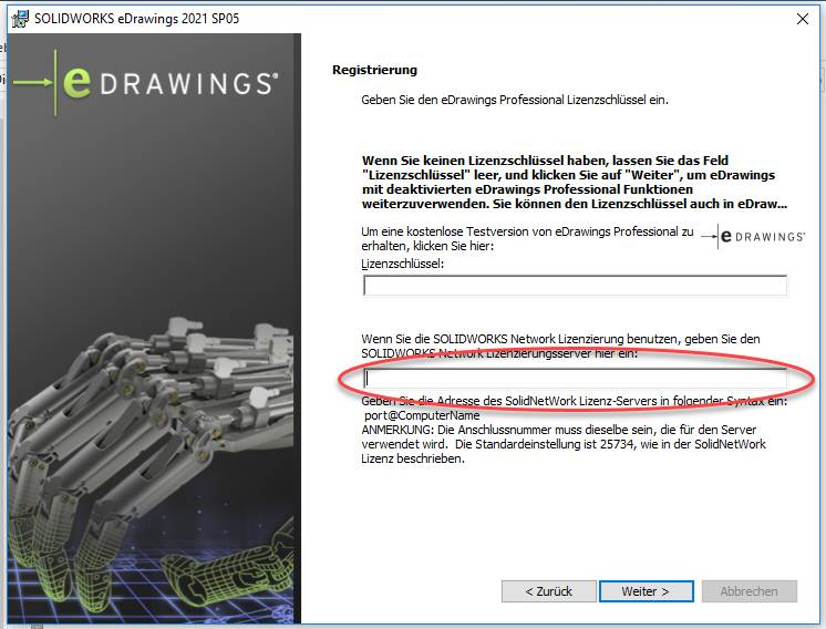 Sie werden beim Öffnen von eDrawings aufgefordert, den Lizenzschlüssel zu registrieren, obwohl Sie dies bereits mehrmals auf demselben Rechner getan haben.