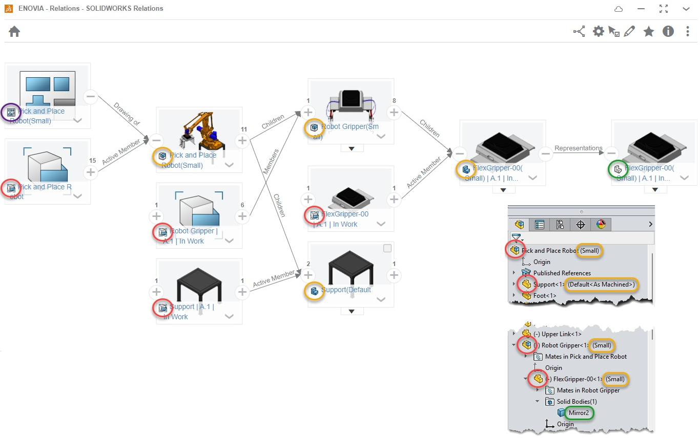 2.Erstellt Objekte, die Ihre SOLIDWORKS Dateien darstellen und mit ihnen verknüpft sind.