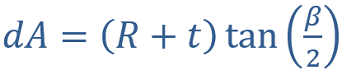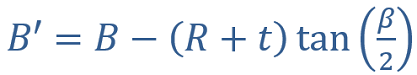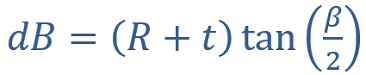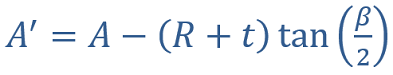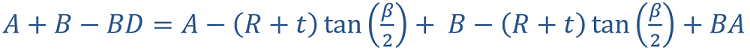 Die Biegezone verteilt sich gleichmässig auf beide angrenzenden Schenkel, daher ist dA = dB. Die Verkürzungen dA und dB lassen sich berechnen als: