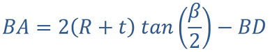 Durch Umstellen nach BA erhält man eine Formel für die Berechnung der Breite der Biegezugabe: