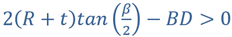 Wird die Breite der Biegezone rechnerisch negativ, kann SOLIDWORKS das Modell nicht mehr aufbauen. Dies ist ein häufiger Fehler bei der Erstellung von Biegetabellen und kann leicht kontrolliert werden, indem mit Hilfe einer Excel Tabelle gegengerechnet wird, ob für alle möglichen Kombinationen von R, t und ß gilt: