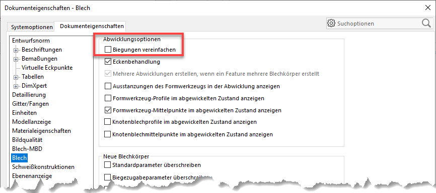 Das Verhalten, wie nicht lineare Kanten in Abwicklungen dargestellt werden, wird in den Featureeigenschaften der Abwicklung definiert.