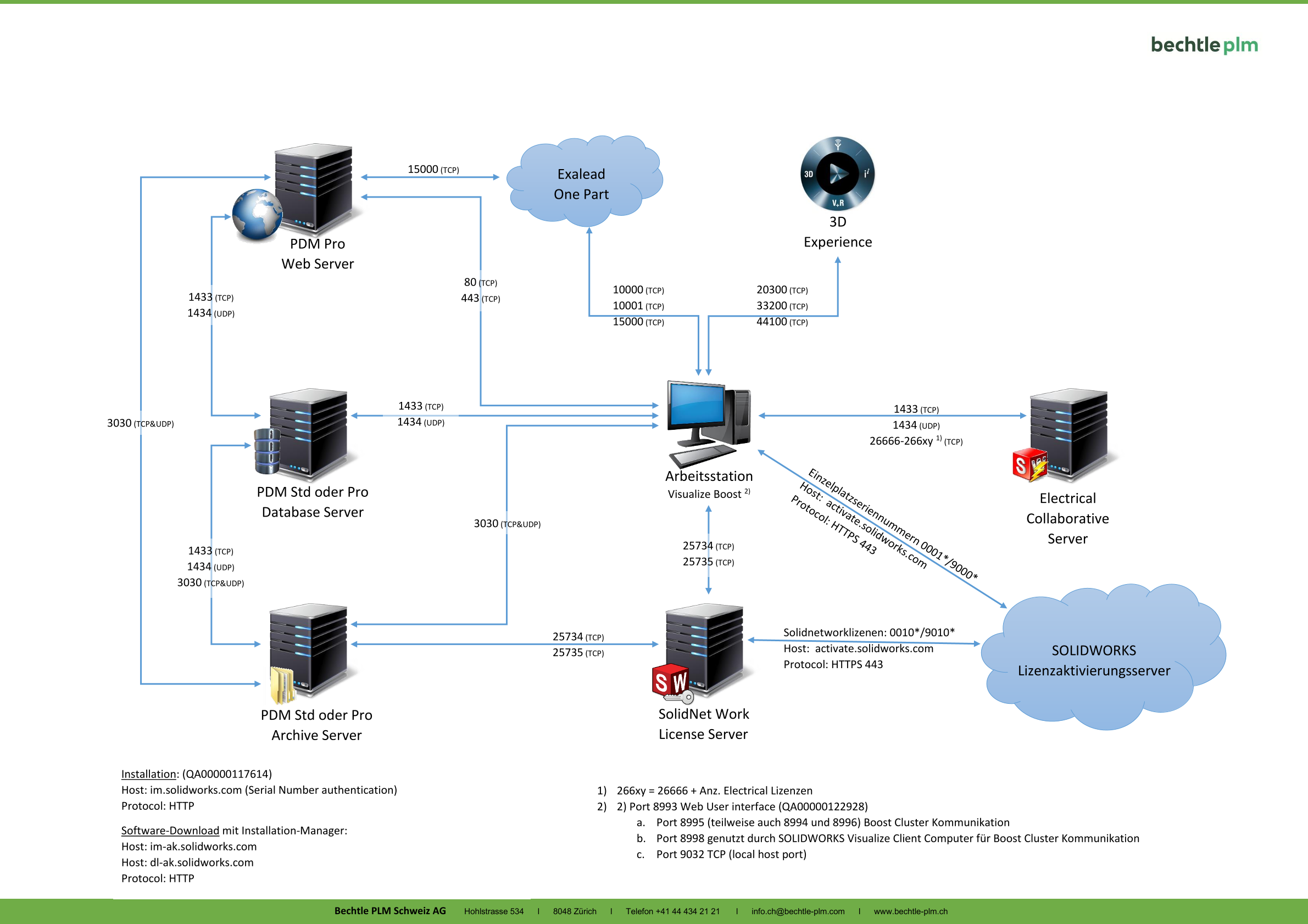 Diese Übersicht zeigt die Firewall-Ports der Desktop Produkte. 3DEXPERIENCE SOLIDWORKS Connected und weitere Clouddienste rund um die 3DEXPERIENCE Plattform benötigen weitere/andere offene Ports.