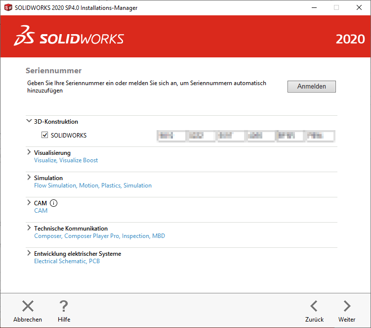 Um die aktuelle SOLIDWORKS Installation mit einer neuen/anderen Seriennummer zu versehen gehen Sie wie folgt vor: