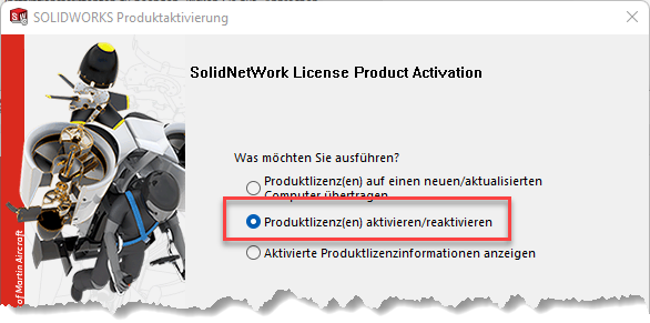 Anschliessend die Option Produktlizenz(en) aktivieren/reaktivieren.
