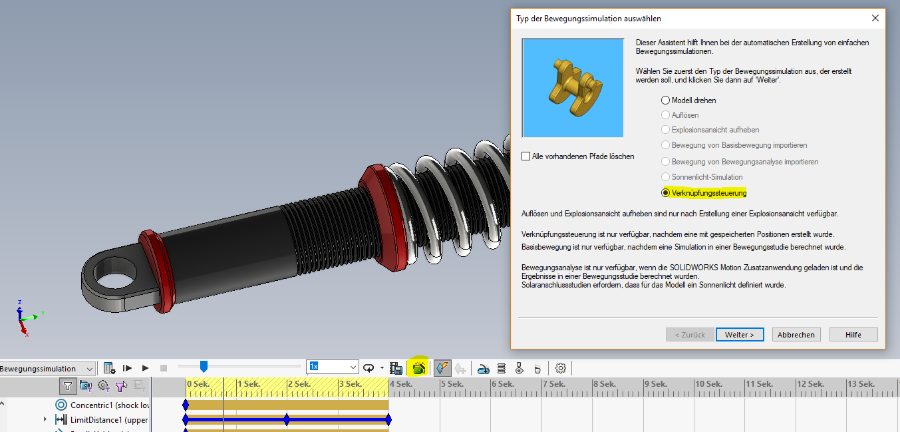 2. Bewegungsstsudie in SOLIDWORKS