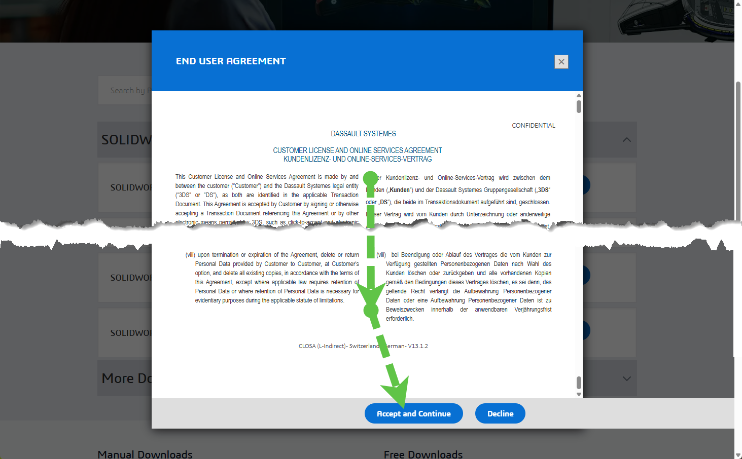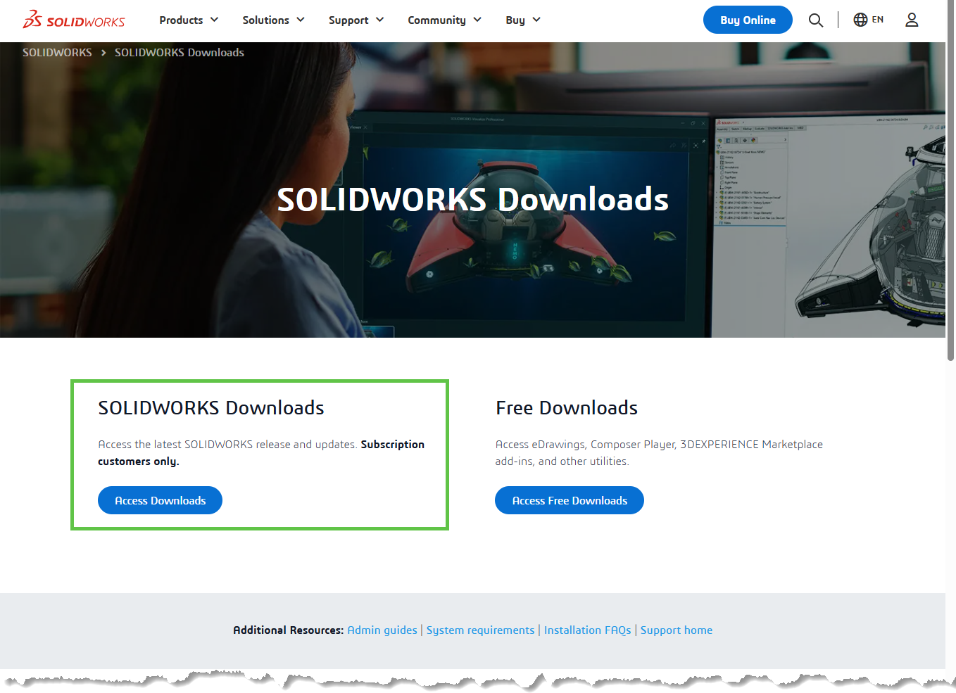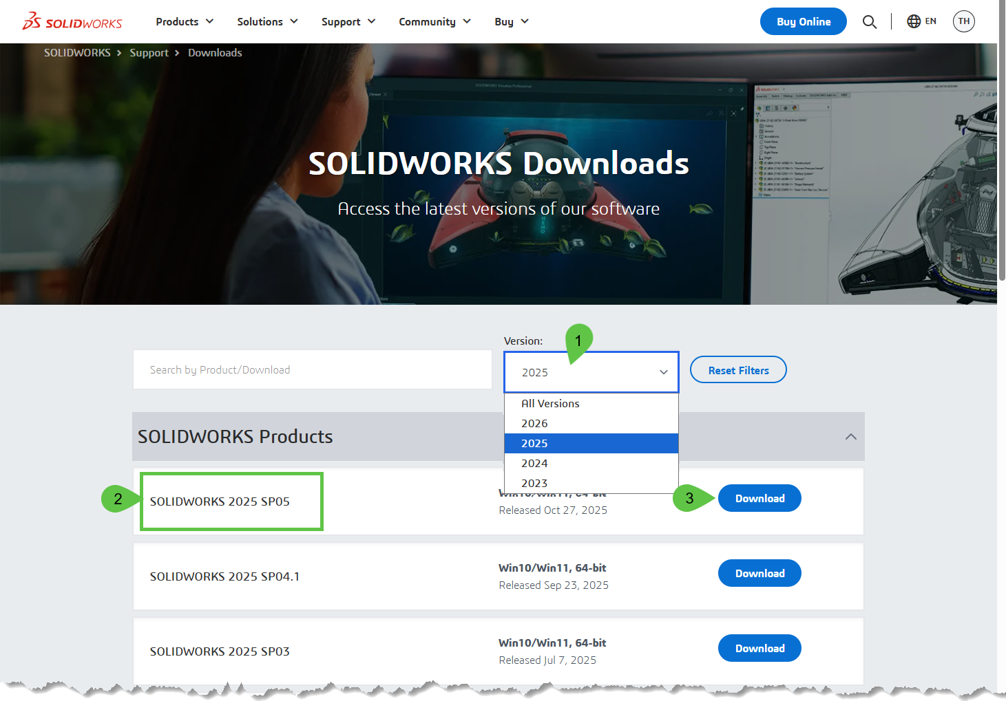 Auf der Download-Seite angelangt, wählen Sie SOLIDWORKS Downloads. Wenn aufgefordert, müssen Sie sich anschliessend mit Ihrer 3DEXPERIENCE ID anmelden.