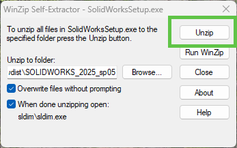 Laden Sie den SOLIDWORKS Installations-Manager herunter und starten Sie diesen gleich über die heruntergeladene SolidWorksSetup.exe. Dabei werden Sie gefragt, wo die Installations-Manager-Dateien entpackt werden sollen. Der Ort ist dabei von geringem Interesse. Empfehlenswerterweise in ein lokales Verzeichnis.