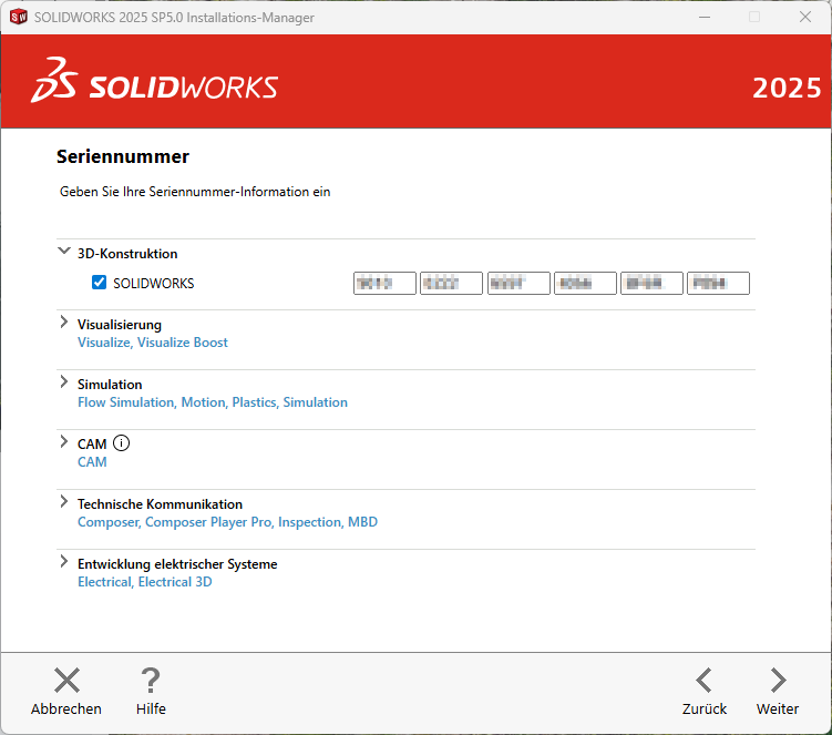 Das Gute daran, dieser Download kann gleichermassen für jede Installation und jeden Arbeitsplatz, wie auch für alle Serverkomponenten (SolidNetWork License Manager, PDM, etc.) genutzt werden. Egal von welcher Version und welchem Servicepack Sie starten. Derselbe Download kann für eine komplette Neuinstallation oder eine Reparatur Ihrer Desktop-Produkte genutzt werden. Egal ob SOLIDWORKS schon einmal auf diesem PC installiert war oder nicht. Dieser Download kann für JEDE SOLIDWORKS-Desktop Installation genutzt werden. Egal ob SOLIDWORKS MCAD, nur eDrawings, die Electrical Suite, die PDM-Komponenten oder Server-Dienste wie den SolidNetWork License Manager. Alles drin in dem Ding!