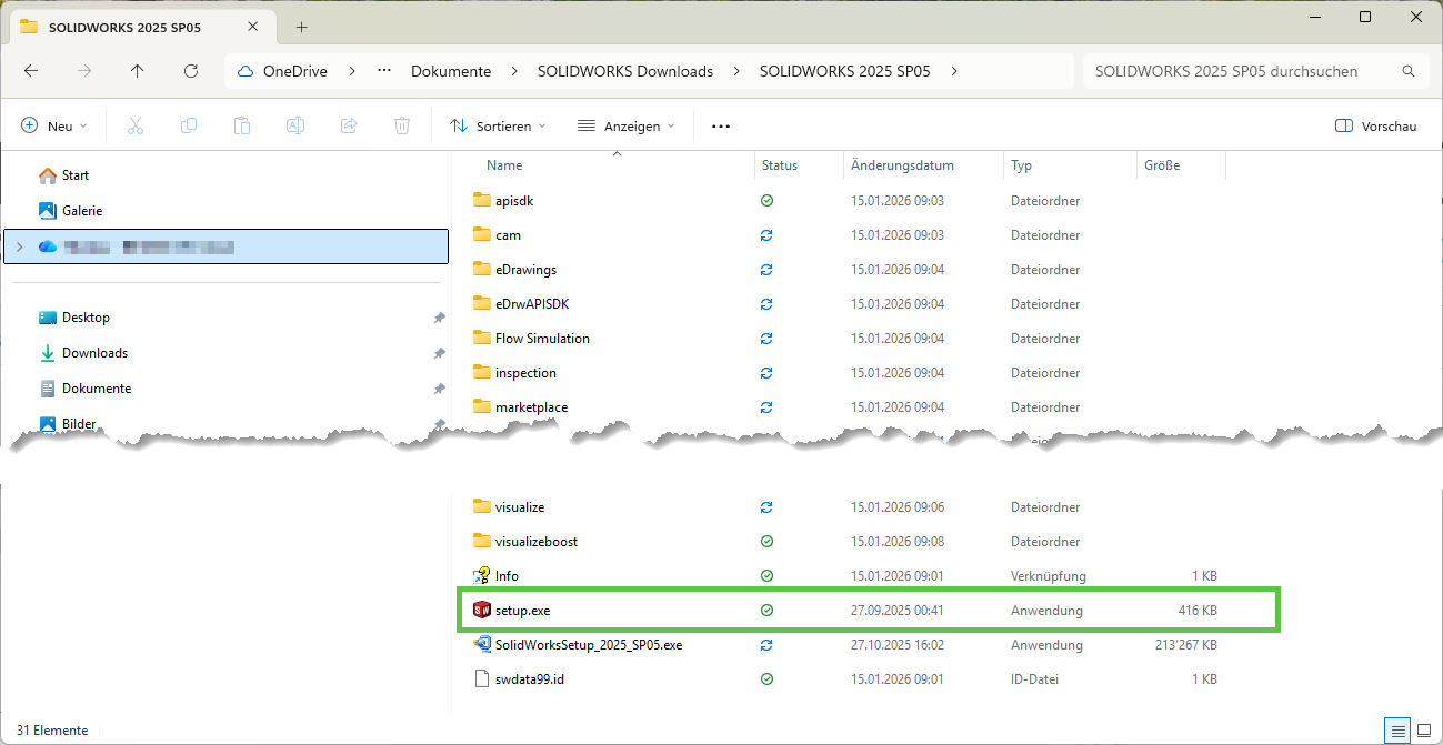 Diese Download-Aktion installiert keine Software. Es erfolgt lediglich der Download. Dieser kann parallel zur täglichen Arbeit in SOLIDWORKS erfolgen. Die Installation selbst kann zu gegebenem Zeitpunkt via Setup.exe aus dem Download-Stammverzeichnis gestartet werden, egal für welche SOLIDWORKS Komponente.