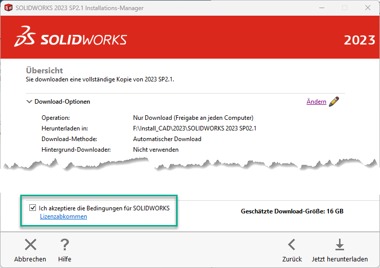 Nun steht dem Download des SOLIDWORKS Installations-Manager nichts mehr im Wege. Damit ist aber noch nicht die ganze Arbeit getan.