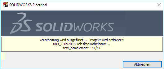 Sind alle Projekte und vorzüglicher weise bei Ihren Arbeitskollegen auch SOLIDWORKS Electrical Schematic wie auch SOLIDWORKS Electrical 3D geschlossen kann das Umfeldarchiv erstellt werden.